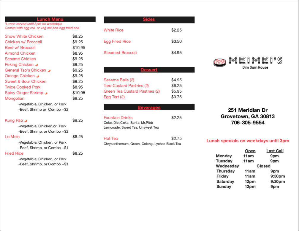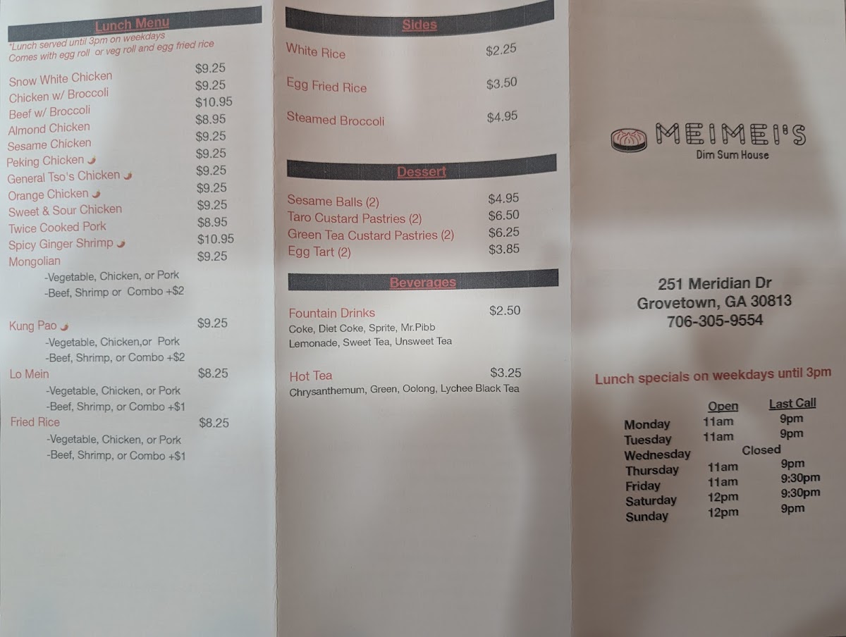 Meimei's Dim Sum House - Grovetown, GA Menu